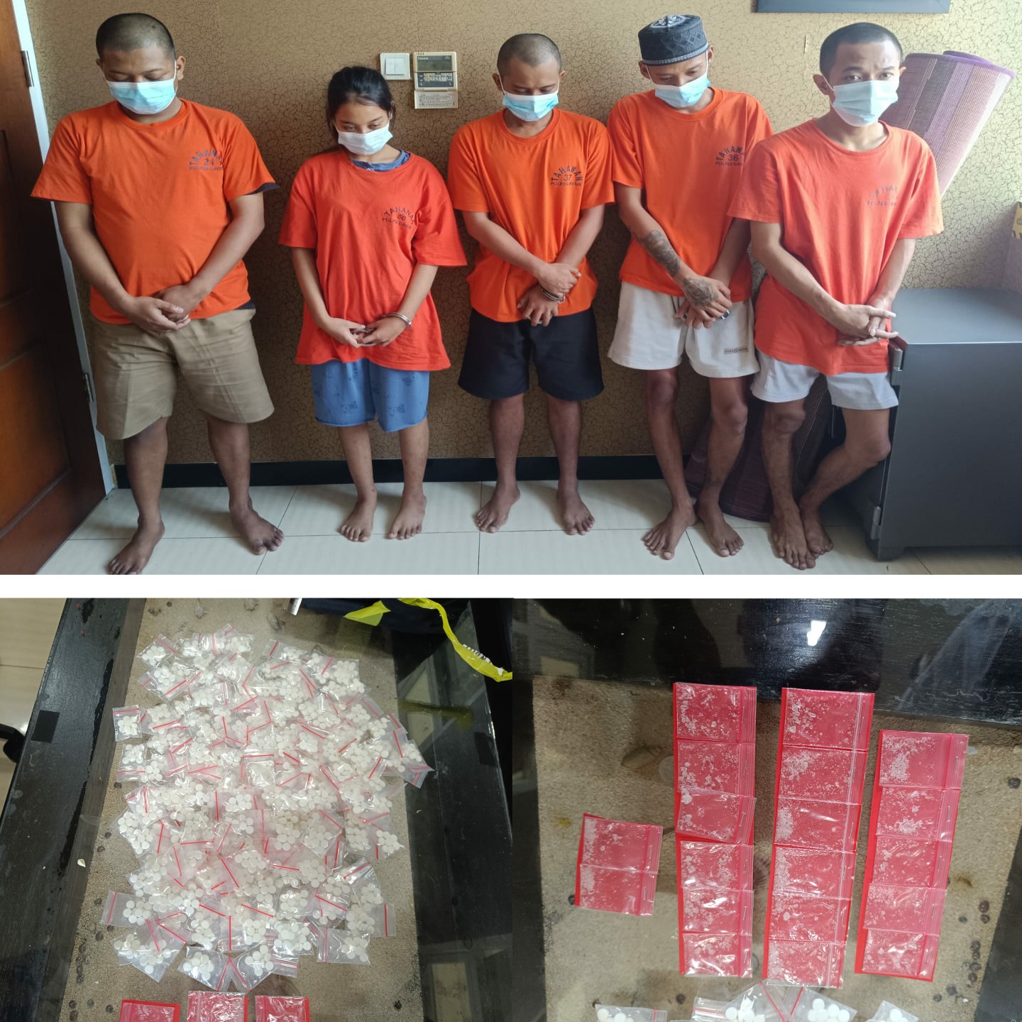 Barang Bukti yang Diamankan: Total sabu: ±2,38 gram dari 17 paket, Pil koplo (logo LL): 2.980 butir, Uang tunai: Rp 1.400.000, 5 unit handphone, 2 sepeda motor, 1 timbangan digital, Plastik klip kosong.