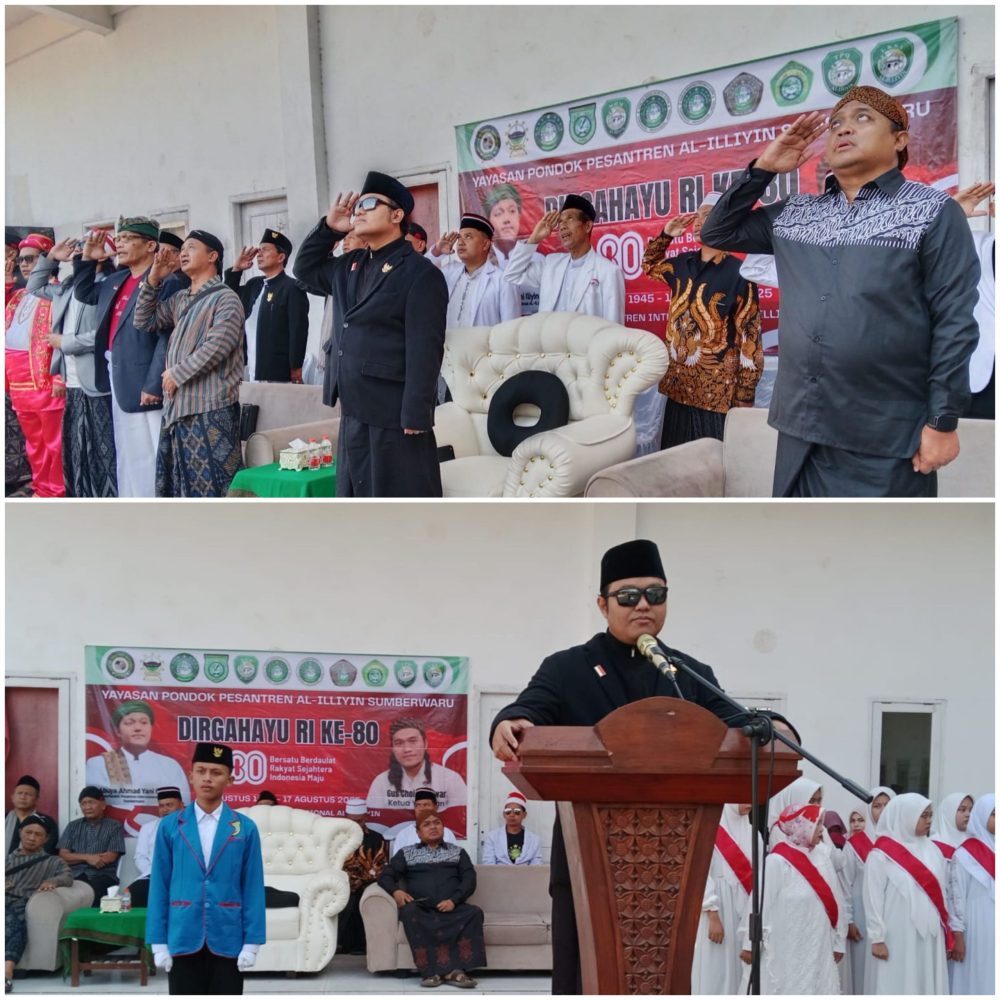 WRINGINANOM – Ratusan Santri Pondok Pesantren Internasional Al-Iliyin dan para Jam’iyah Sholawat Ibrohimyyah (JassBro) Dusun Sumberwaru RT.02 RW.03, Desa Sumberwaru, Kecamatan Wringinanom, Kabupaten Gresik, Jawa Timur, 61176 menggelar upacara peringatan hari ulang tahun ke:80 tahun Kemerdekaan Republik Indonesia, Minggu 17Agustus 2025.