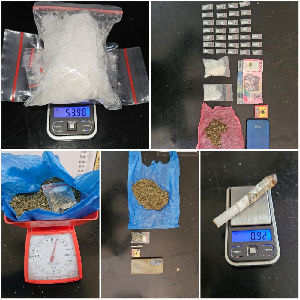 Dari tersangka Ranto Damanik, petugas mengamankan sejumlah barang bukti yang mengindikasikan aktivitas perdagangan narkoba dalam skala besar. Barang bukti tersebut meliputi 2 bungkus plastik klip besar berisi sabu, 31 bungkus plastik klip kecil berisi sabu dengan berat total brutto 53,98 gram, 1 bungkus plastik kresek kecil berisi ganja dengan berat brutto 4,32 gram, 1 unit handphone Android merek Vivo warna biru, uang tunai Rp 200.000, serta berbagai perlengkapan pengemasan seperti timbangan digital, sekop dari pipet, dan plastik klip kosong.