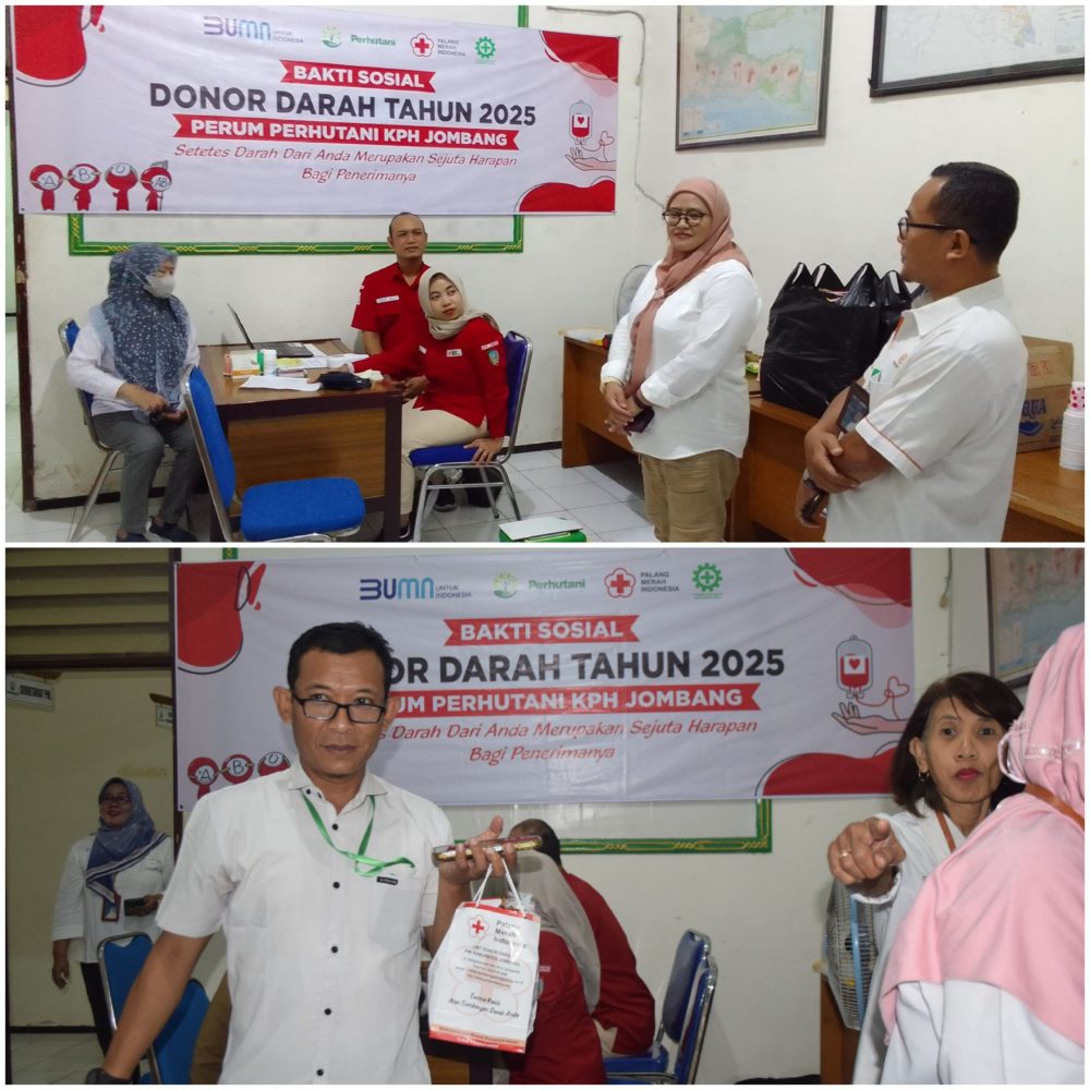 JOMBANG, (17/09/2025) – Perhutani Kesatuan Pemangkuan Hutan (KPH) Jombang menggelar aksi sosial donor darah, bekerjasama dengan Palang Merah Indonesia (PMI) Kabupaten Jombang di Aula PHL Kantor Perhutani KPH Jombang, pada Rabu (17/09),