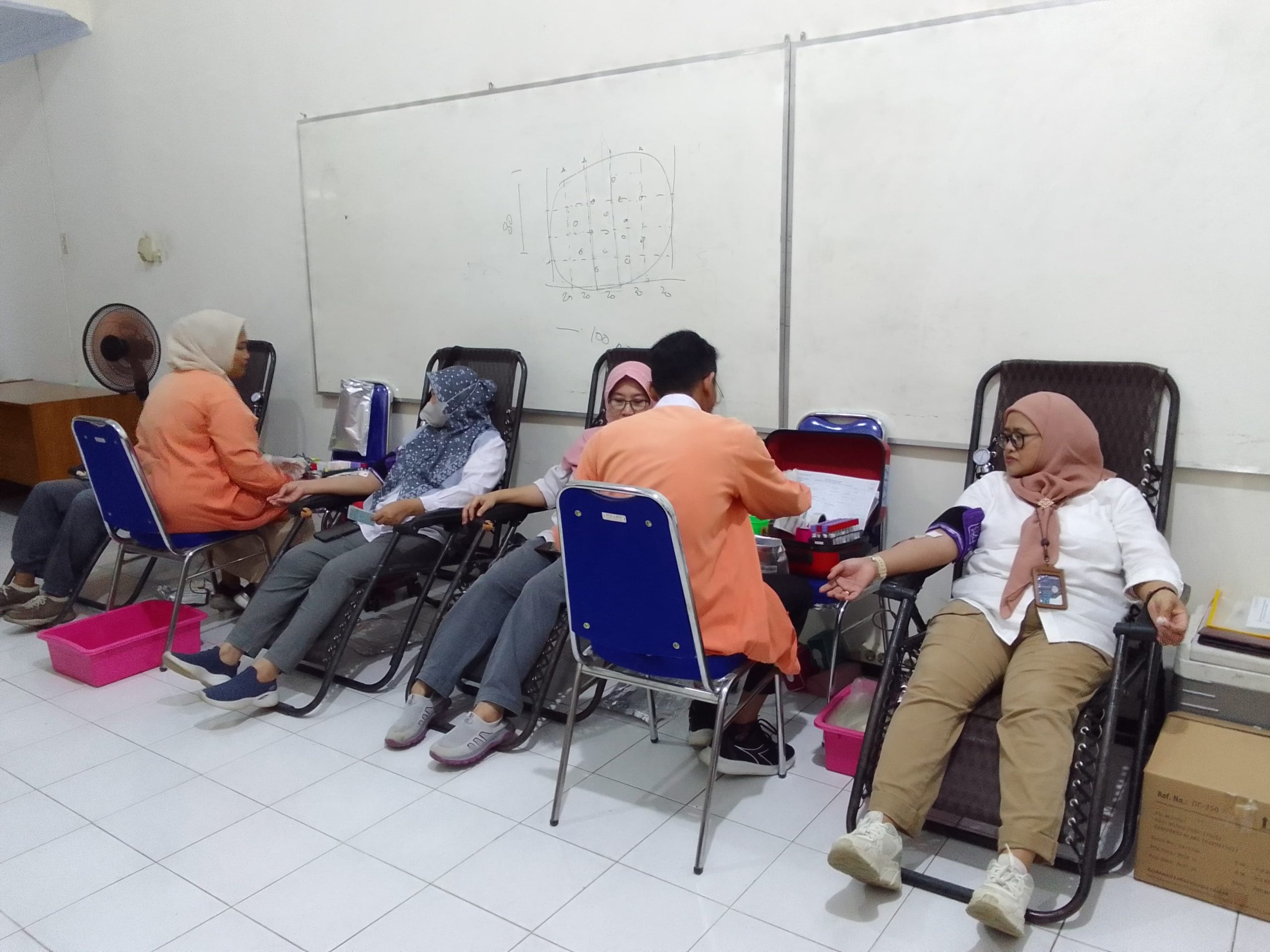 Hadir petugas dari PMI Kabupaten Jombang yaitu Nur Ali, Izzaty khoirina Putri, Eka Sulastiningsih, Aziz Fahrul Prianto.