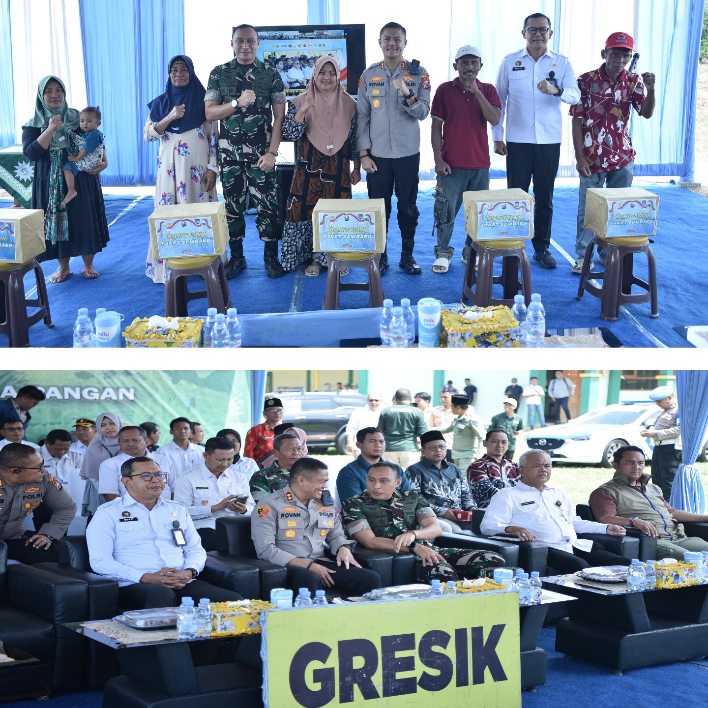Kegiatan di Gresik dipimpin langsung oleh Kapolres Gresik AKBP Rovan Richard Mahenu, bersama pejabat utama Polres Gresik. Turut hadir Dandim 0817 Gresik, Kepala Dinas Pertanian Kabupaten Gresik, perwakilan Bulog Cabang Surabaya, serta pimpinan Ponpes Madinatul Ilmi Surowiti.