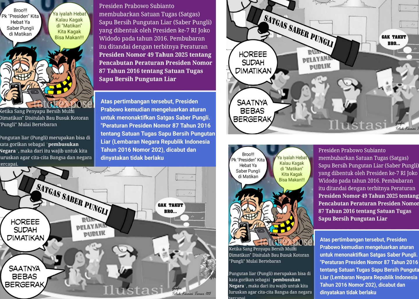 Presiden Prabowo Subianto membubarkan Satuan Tugas (Satgas) Sapu Bersih Pungutan Liar (Saber Pungli) yang dibentuk oleh Presiden ke-7 RI Joko Widodo pada tahun 2016. Pembubaran itu ditandai dengan terbitnya Peraturan Presiden Nomor 49 Tahun 2025 tentang Pencabutan Peraturan Presiden Nomor 87 Tahun 2016 tentang Satuan Tugas Sapu Bersih Pungutan Liar.