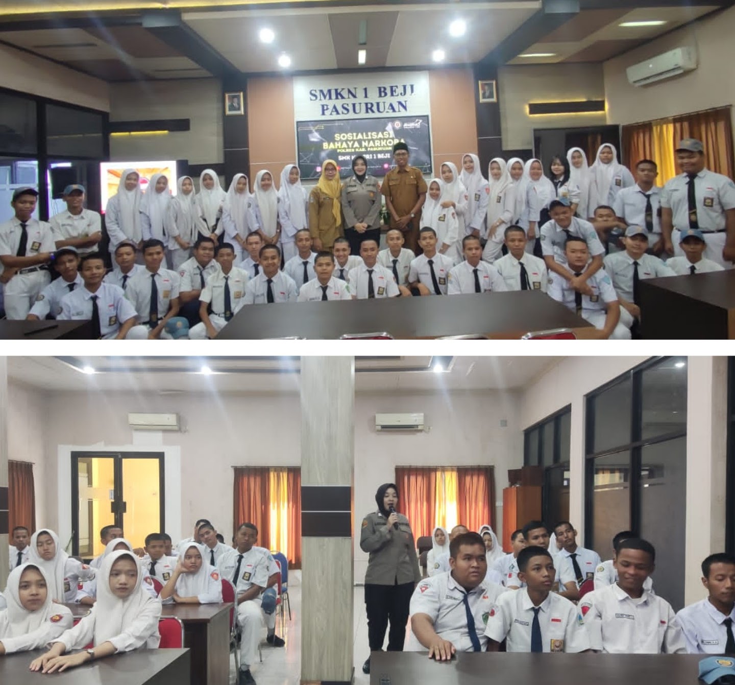PASURUAN — Satuan Reserse Narkoba (Satresnarkoba) Polres Pasuruan menggelar sosialisasi dan penyuluhan bertema “Bahaya Penyalahgunaan dan Peredaran Gelap Narkoba” kepada kirang lebih 80 siswa-siswi di Aula SMKN 1 Beji, Senin (20/10/2025).