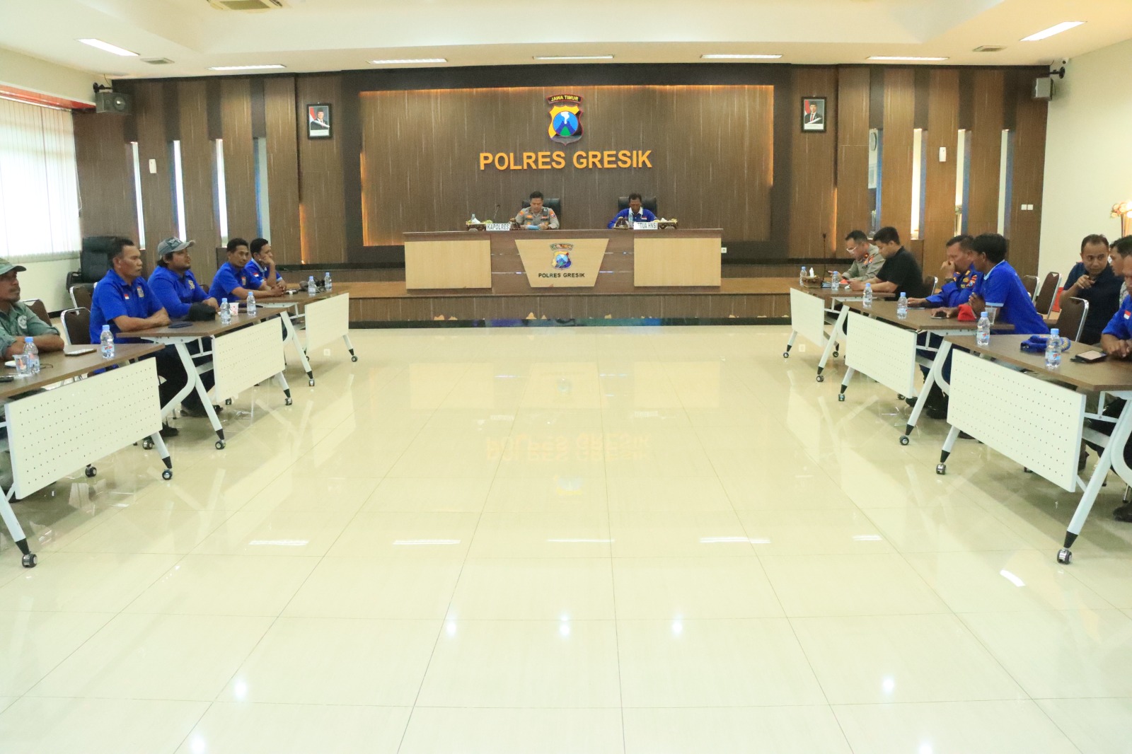 GRESIK – Polres Gresik menggelar diskusi bersama pengurus Himpunan Nelayan Seluruh Indonesia (HNSI) Kabupaten Gresik guna memperkuat stabilitas Keamanan dan Ketertiban Masyarakat (Kamtibmas) di wilayah perairan. Kegiatan yang berlangsung di Aula SAR Polres Gresik, Kamis (18/12/2025), dipimpin langsung Kapolres Gresik AKBP Rovan Richard Mahenu