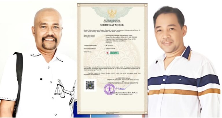 “Terdaftarnya merek JAWAPES di Kemenkumham membuktikan keseriusan kami membangun organisasi yang profesional, legal, dan berorientasi pada pelayanan sosial. Perlindungan hukum ini penting untuk menjaga marwah dan identitas JAWAPES di seluruh Indonesia,” ujar Edy diruang kerjanya, Kamis (15/01/2026).