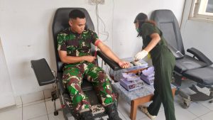 Satgas Pamtas Yonarmed 12 Kostrad Kompi 3 Motamasin Peduli Donor Darah Kepada Warga Perbatasan